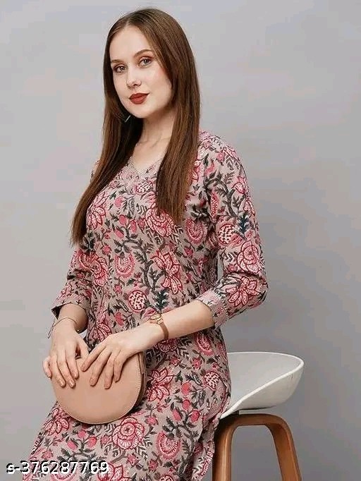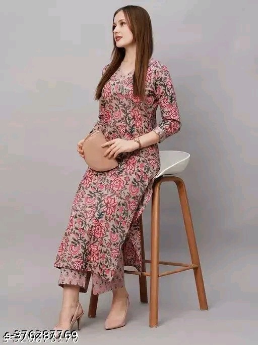 Name: Ghanshayam Fashion Women's Peach Printed Kurta with Palazzo